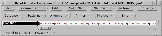 In GDE, use File --> Import Free Format, and type in 'pBSGUS.dna' Note that free-format files do not contain sequence names, so the filename is used as the sequence name, in GDE. Since we don't want the .seq extension to be part of the name, get rid of '.dna' in File --> GetInfo. The name should now be 'pBSGUS'.h. The last step in creation of a sequence file is annotation. This is critical, because it documents precisely what you have done. The ability to reproduce results is as important in computers as it is in the lab. GenBank format is the richest and most versatile sequence file format, and it is read by most sequence programs. SEQUIN automates the process of creating GenBank format files.Save as a Pearson/Fasta file by choosing File --> Export Foreign Format, and typing 'pBSGUS.wrp'.