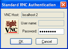 The password prompt pops up. Type in your VNC password. This is NOT necessarily your Unix password. It is the password that you set the first time you started vncserver, or whenever you most recently ran vncpw.
