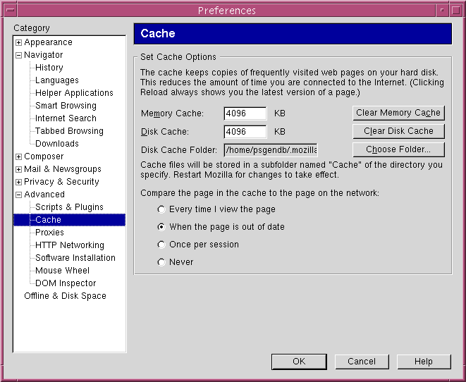 caches. Netscape and Mozilla save the contents of web pages