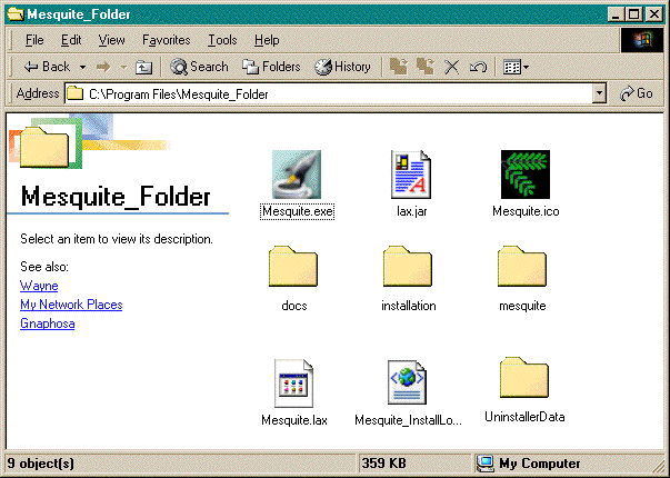 First, download and run the installer "mesquiteInstall.exe" (this installer was made using InstallAnywhere from www.zerog.com).